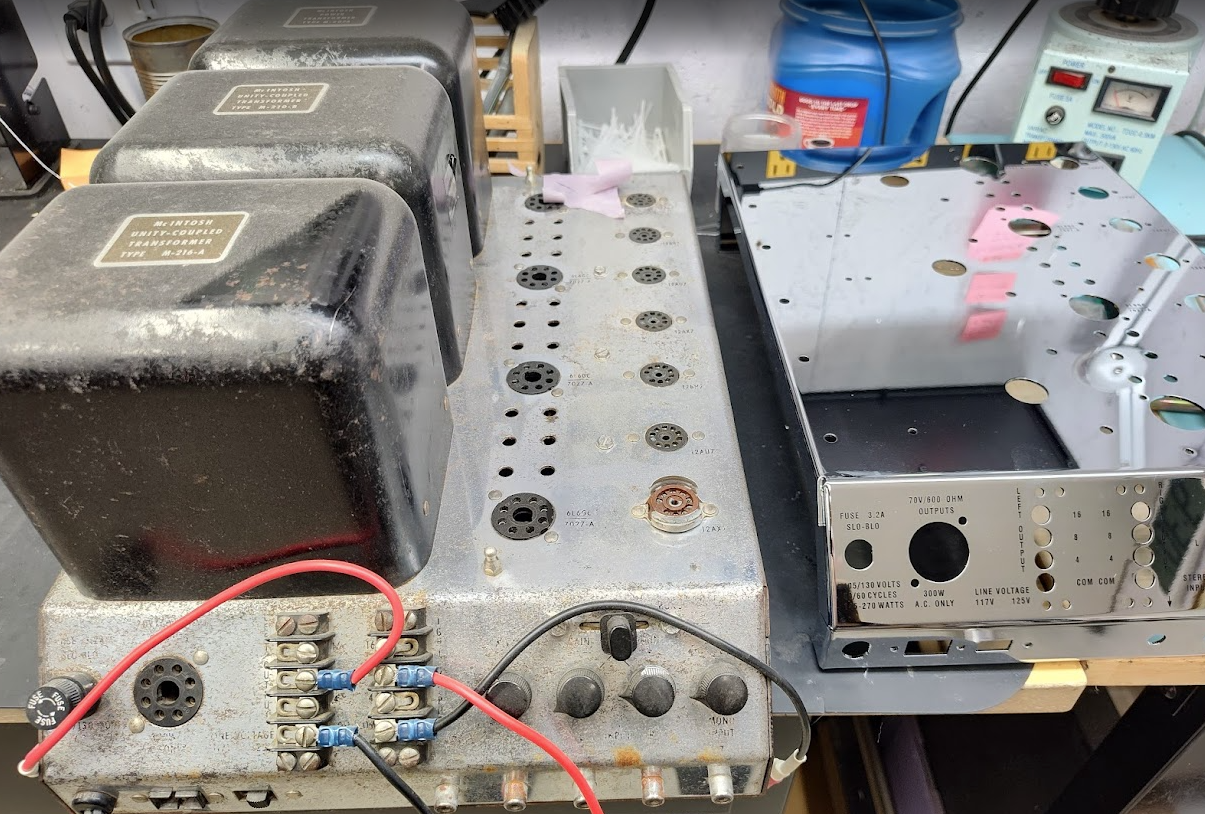 Greg @Nahash5150 I don't know the back story on why this amp is on your bench. Lets say, its not a customer, but something that you sourced for your own use. If it was for a customer, I might have written the following differently. I did a little research on this amp and I've come to this conclusion. I just hope that I can explain it clearly. First the going price for this model, depending on the condition is maybe 3500 to 5000 (correct me if I'm wrong). That was the asking prices on ebay that I viewed. For discussion purposes lets say I can flip it for $4000.00 and I spend no more than 1200 for parts, don't know the bench time required so I can't factor that in, but it could still come out to be a nice profit. One of my first decisions is on availability of spare parts. You have a very nice Chrome chassis to work with. The vendor that I found for that chassis (and possibly the same one that the chassis was sourced from) also has some very nice reproduction pieces, such as the decals for the transformer covers and either a silver or gold badge 240 badge. For you sourcing the tube sockets, correct wire color and size would be no problem. The other sockets or holders for the metal caps (or whatever they are) I feel that you have the abilities to source them. The pots, depending on their condition, might take some reconditioning. Might need to see if replacements are available. I do know that for the dynaco amps there are a few vendors offering parts for restoration so maybe this is the case for the 240 amp. No doubt you have the wiring diagram for this unit so that would be a great source of encouragement to start with. I might start placing as much on the new chassis as possible such as the tube sockets, pots, and speaker terminal strips, some preliminary wiring with lengths long enough to be later adjusted, thus using the original chassis and schematic as a guide. I do know that you not only have the correct equipment but also the knowledge and experience to tackle this endeavor with a systematic approach, and that in Itself gives it a way better chance for success. Enough encouragement? You have this. -