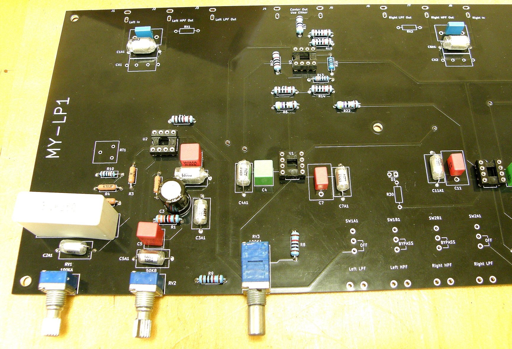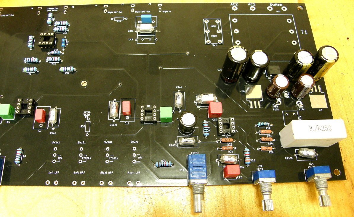 I recently posted on a thread from @Dadvw regarding a blown plate amp and I mentioned a project @jeffsand I were working on for an active crossover that, while it is based on a Dahlquist DQ-LP1 design, incorporated a modern power supply, modern multi layer board with a ground plane, newer components, and a revised circuitry. Some background, I've been using the Dahlquist DQ-LP1 for years. There is a lot of info on the internet if you want to grab a copy of the manual and schematic. Like the C-1, it has a loyal following including hobbists that have documented numerous improvments over the years. I've collected a lot of info and can post it if desired. I drive 2 subs, a left channel and a right channel. Common practice is to use a mono sub as "low frequency is non-directional". I was watching a Paul McGowen video on multi subs and he addressed that the frequency of a sub goes from non-directional to directional - he strongly advocated dual subs. I researched the internet and you can't get a straight story, one of the prevalent therories is that LF sound is non-directionsl under 400hz since that is equivilent to the spacing between the average human ears. Sounds hokey to me. Here's what I know, I can run a low frequency signal and I can point directly to the sub. Maybe I'm just weird and have a thin head. IMHO, for 2 channel music, if you feel you need a sub then you want ideally 2 subs. One by the Left speaker and the other by the Right, each being fed by their respective independent stereo channel. Picture to follow of my layout (room size and layout is not perfect but you work with what you have). You'll see a set of Dahlquist DQ-SW1 subs, with JBL L100t perched on top of them. I use the preamp signal (4000t), and feed it into the Dahlquist DQ-LP1. The low pass signal (independent L and R) feeds a TFM-24, which feeds the SW1s. The HP goes into a TFM-42 and feeds the JBLs. The DQ-LP1 is an old unit. @jeffs and I (mostly Jeff) redesigned the DQ-LP1 (MY-LP1) to improve it. This was not and is not intended as a commercial project, just an interesting personel project. I can post more on the project if interested.1 point