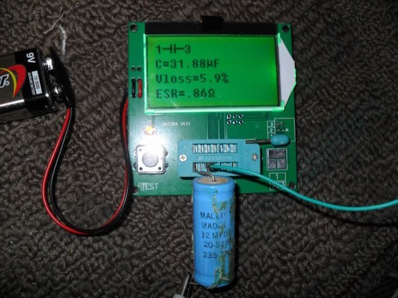 1st / 2nd pic show test results for old capacitors 3rd pic shows new connection block with new capacitor
