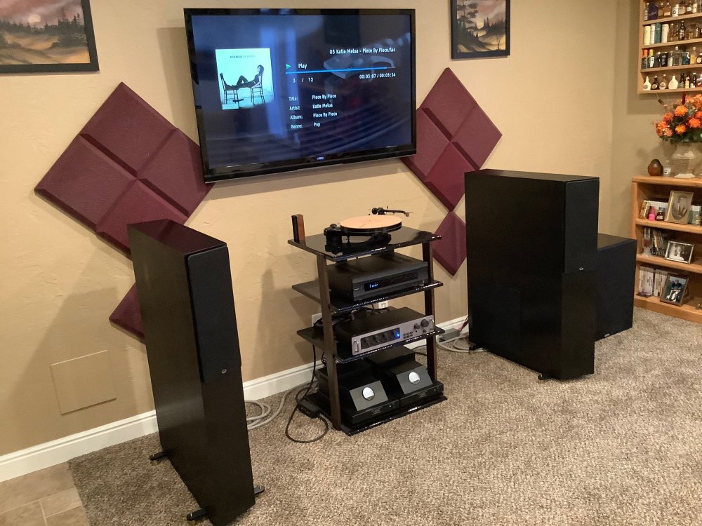 Well. If a little (or a lot) is good, then a whole lot more is great. Right? In the case of bass in my HT, the answer is a resounding YES! I had my 2nd Velodyne DD18 just sitting around collecting dust. It got wet in the flood about a year and a half ago, and to be honest I was afraid to plug it in. With some of the proceeds from selling my 2nd pair of Silver 9ts, I sent the plate amp off to EBC in New Jersey. They are reasonable ($400) for plate amp repair/refresh, and do great work. Even if it wasn’t damaged, the amp is getting on past the 30 year old mark, and due for some attention. Well, I got the amp back a couple days ago, so today was the day. Had a bit of a panic and detour that I’ll detail in another thread, but after some ingenuity I got it up and running. I now have a 7.4.4 HT system, with two SVS SB4000 and TWO Velodyne DD18. Don’t get me wrong, the SVS are very nice and stout subs, but the Velodyne DD series…. They are on a whole different level. An 18” Kevlar cone (that’s just about 255sq inches) with a TWO INCH peak to peak excursion, and a 1,500 class D amp… they move some air. By comparison, the SVS uses a 13” driver (133sq inches) with a 1.25” excursion. playing Top Gun Maverick, Lord of the Rings (the underground battle) and Days Of Thunder (all on 4k), I’m in bass heaven. The two Velodyne subs are kind of hidden behind the seating, but they make their presence known when called upon….