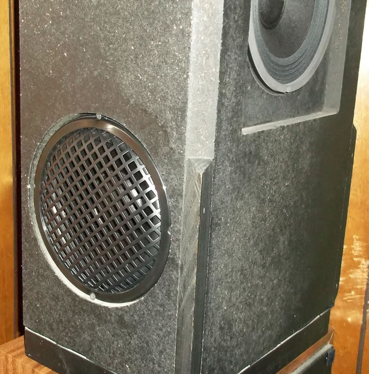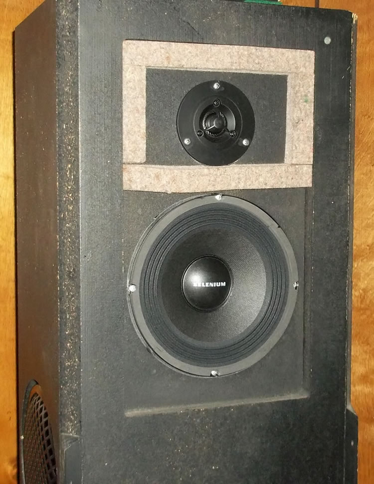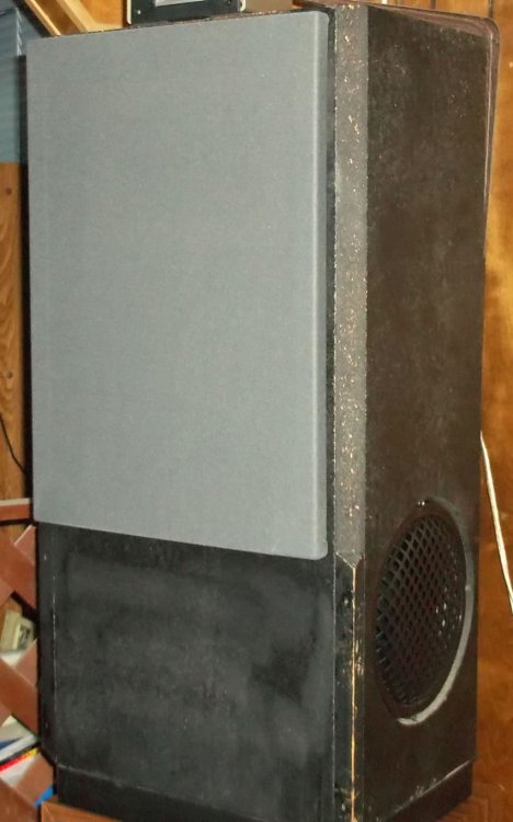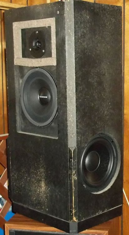 A work colleague and friend bestowed upon me a set of AR-93Q's. I was totally unaware of these side firing woofer speakers until I went to pick the set up. Their pillow case grills were still intact, but I dismantled them to gain access to the speakers. I'm guessing all the drivers were original, but they were beat bad. The tweeters had their dust caps poked in and all the other drivers had seen better days. I'm not big on restoring things to original, so I ordered parts from Parts Express to replace everything. I kept the stock crossovers, which had points at 350hz and 2Khz. I needed a tweeter that could handle 2Khz up to 20Khz. I found that in a Visaton dome. The mid-bass was easy, because Parts Express had them on sale. Selenium 8"ers. The woofers, 4 of them, all had to match and have some excellent bass. Dayton Audio Classic 8" woofer was my choice. I'm not going to wrap the speakers back up in the pillow case, so I got metal grills for the side firing woofers. For the fronts, I'm making custom grills to be held on with magnets. I'll post pics of them when I get that done. Those parts are still in the mail. Here's work so far: