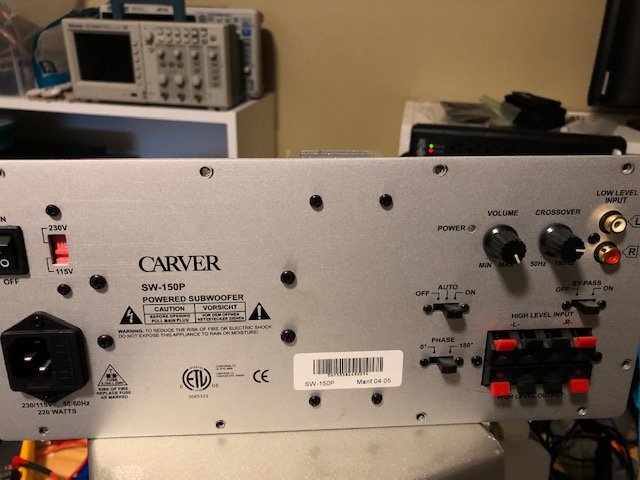 Will Meyer 2,425 Posted June 16, 2020 Posted June 16, 2020 (edited) Does anyone have any background on the SW-150P subwoofer? I saw it on shopgoodwill and won it for $19 plus shipping. I can't find any information on the unit. The unit has a manufacturing date of April 2005, so I'm assuming its Carver in name only. The plate amp is supposed to be 150 watts (I think), but besides a few burned up components, the amp looks to be very simple to the point of being crude. The speaker is in nice shape and measures just a smidge over 4 ohms. The cabinet is a bit rough but servicable with a little repair work. Not sure what I'm going to do with it at this juncture - trying to get some info. Here are some pics. Edited June 16, 2020 by Will Meyer 3
