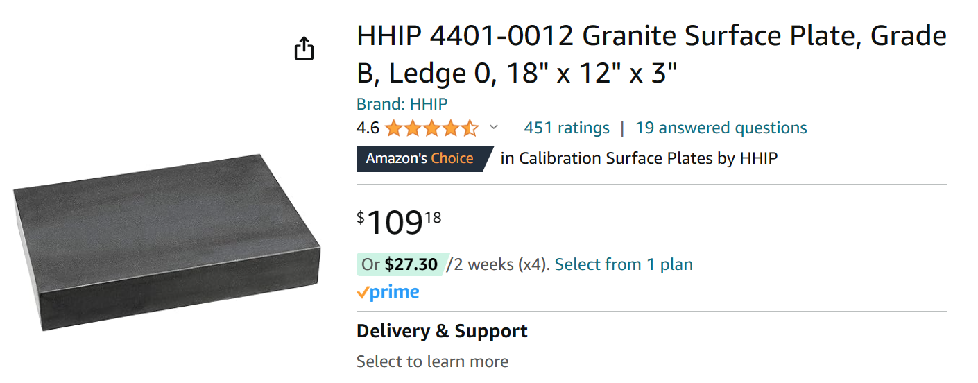 Community Admin AndrewJohn 10,451 Posted December 12, 2023 Community Admin Posted December 12, 2023 OK, I was thinking..., Zoro, and even Amazon, sell some B-grade Granite Surface Plates that may be more economical than engaging with the local counter-top maker..., ...and you can save gas, because these are "prime", and free delivery for something that weighs 80+ lbs. Below is the size that would fit under a Silver 7t Monoblock. For 2 x $86, for a block of granite that is 2 inches thick. 1