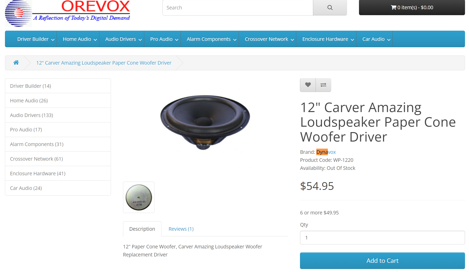 Community Admin AndrewJohn 10,451 Posted March 20, 2024 Community Admin Posted March 20, 2024 OK, light forensics..., does this make sense? There's another company, OreVox..., and somewhere (elusive to pinpoint) Orevox and Dynavox joined? Or is it that "Dynavox" was a brand, not a company, and the speaker just happened to have it's own website... Some elusive posts on AK about it. So, I went to the OREVOX website..., and on the home page, is a picture of the Dynavox driver, and it's even called "12" Carver Amazing Loudspeaker Paper Cone Woofer Driver"..., here's the link... https://orevox.com/12inch-Carver-Amazing-Loudspeaker-Paper-Cone-Woofer-Driver So, maybe it's just a simple website change? And the drivers are still available? BTW, there's some kind of supplement/pharmaceutical product called DynaVox, upper case "V", so maybe (speculating here) there was a conflict that lawyers figured out, causing the old website to go away... I dunno - just am glad to see these still available, and and a good price. 3